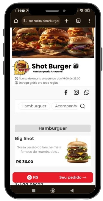 - Subdomínio grátis: menuzim.com/SuaEmpresa